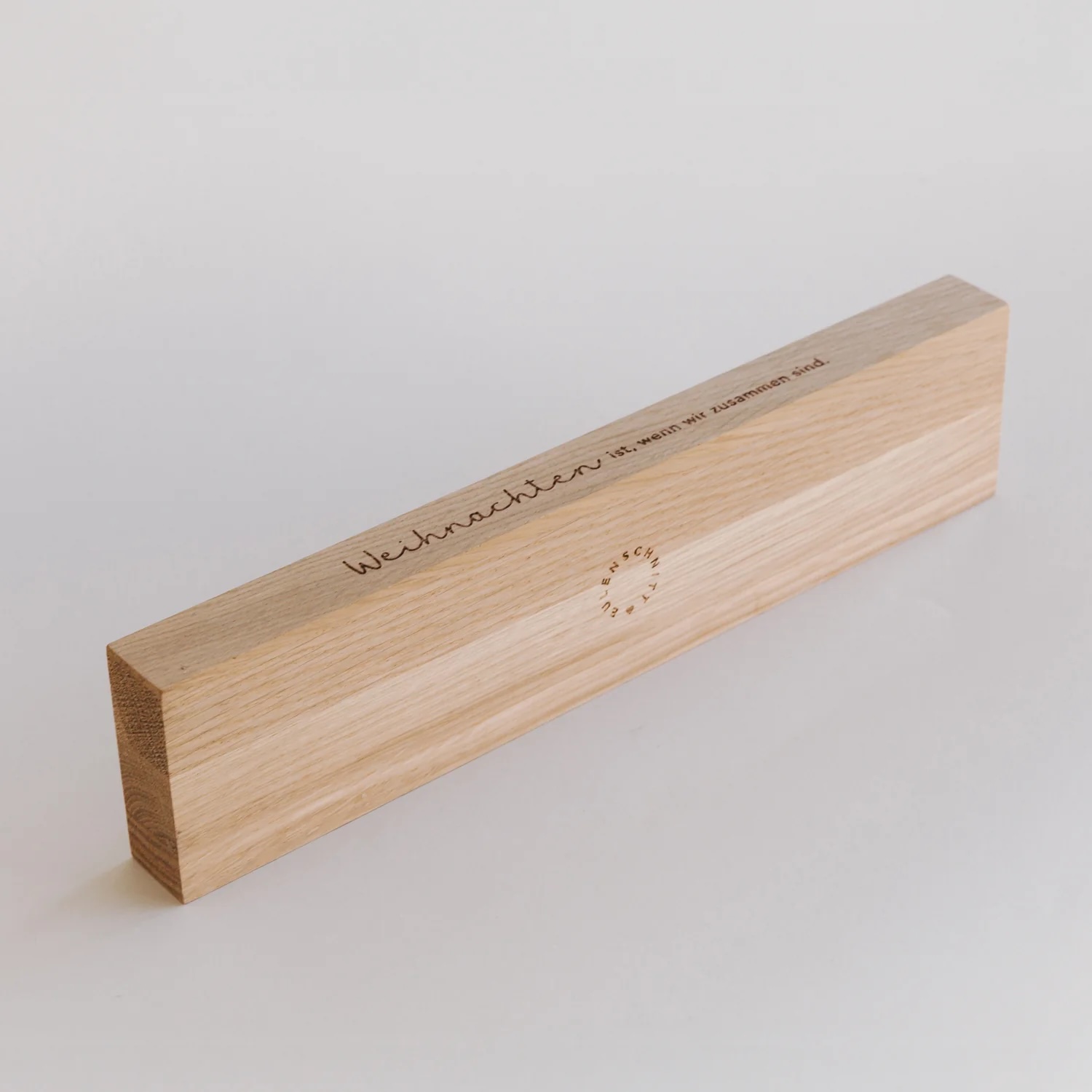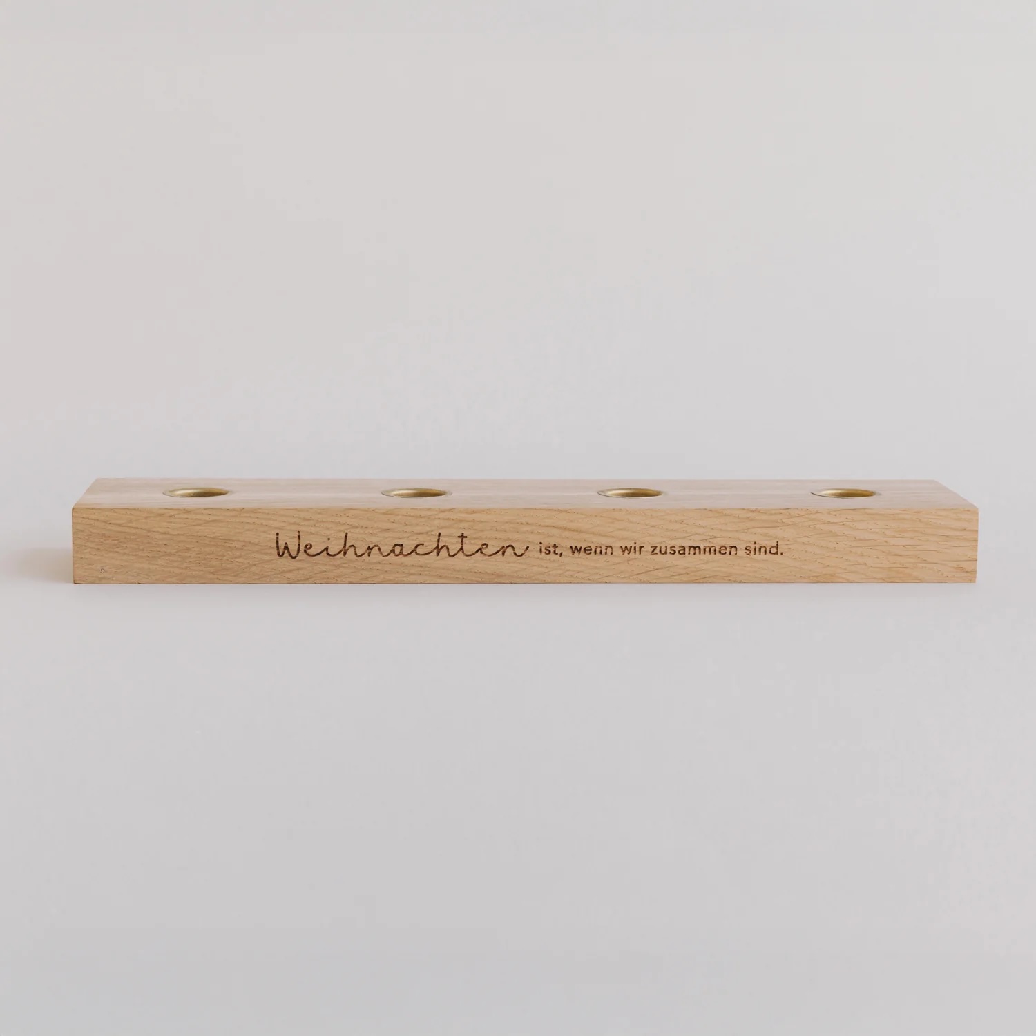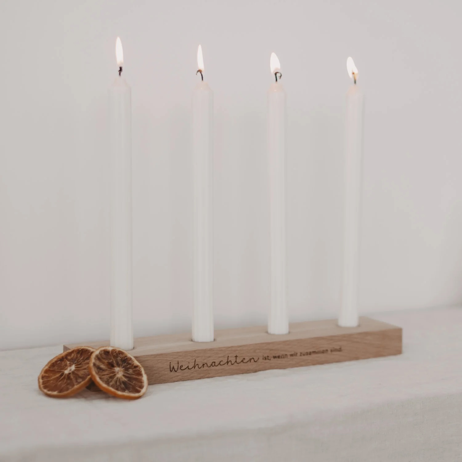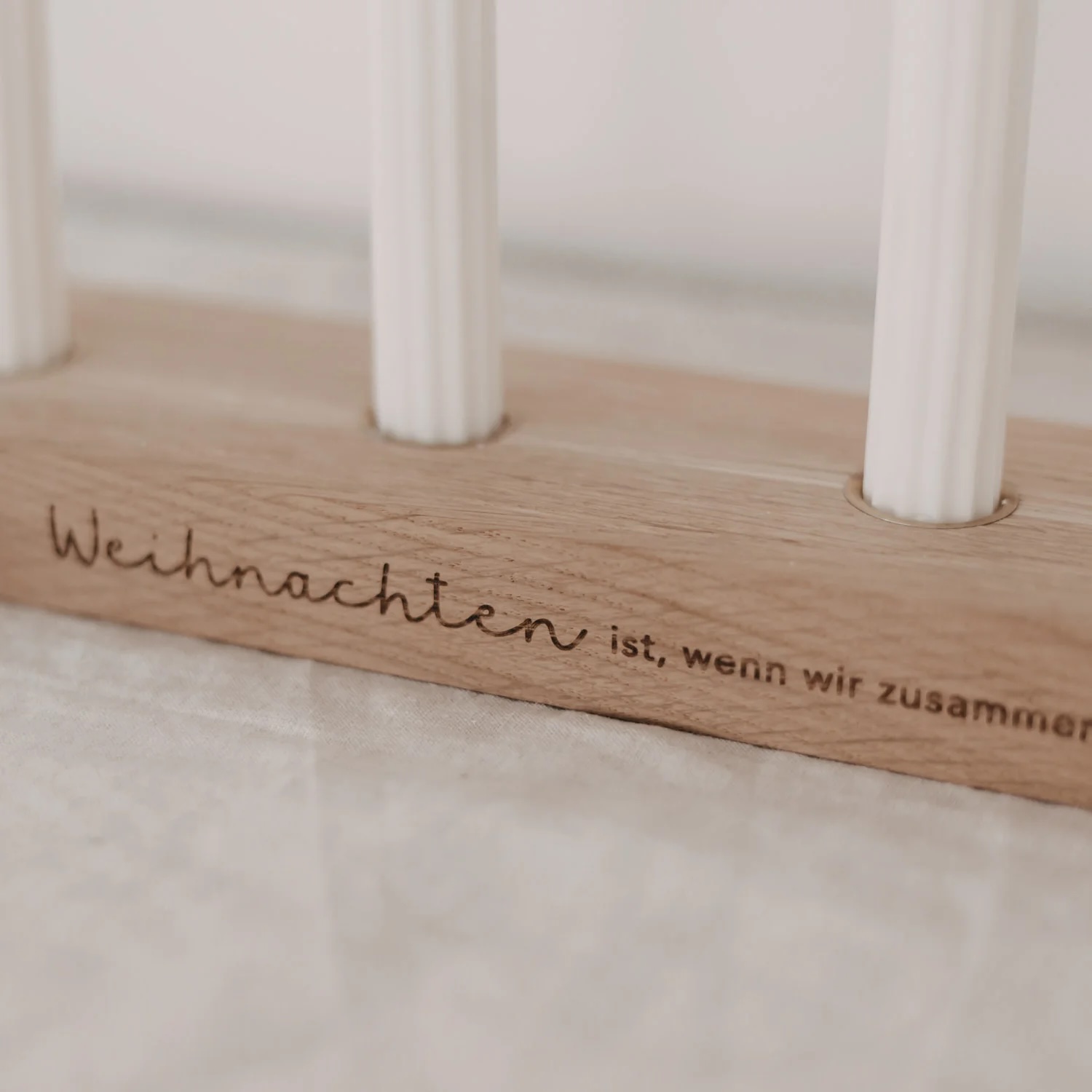 Unser Adventskerzenbrett ist die perfekte Wahl für eine gemütliche und stimmungsvolle Adventszeit. Der dezente Spruch „Weihnachten ist, wenn wir zusammen sind“ ist ein echter Lieblingsspruch und verleiht deinem Zuhause eine warme Weihnachtsatmosphäre, die Vorfreude auf die Zeit mit Familie und Freunden weckt. Mit seinen praktischen Maßen von 35 x 8 x 3 cm passt das Kerzenbrett überall hin – ob auf den Couchtisch, Esstisch, die Fensterbank oder ins Regal. So kannst du jeden Adventssonntag noch ein bisschen mehr genießen!