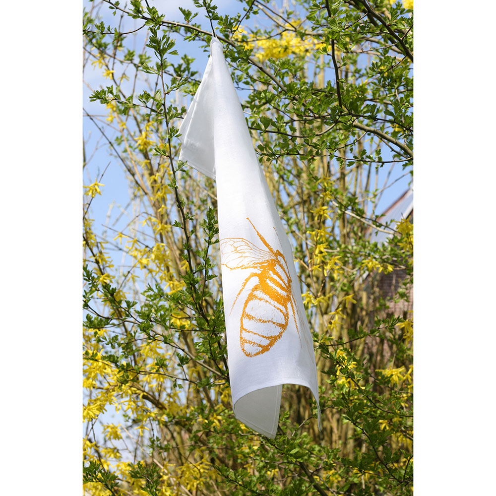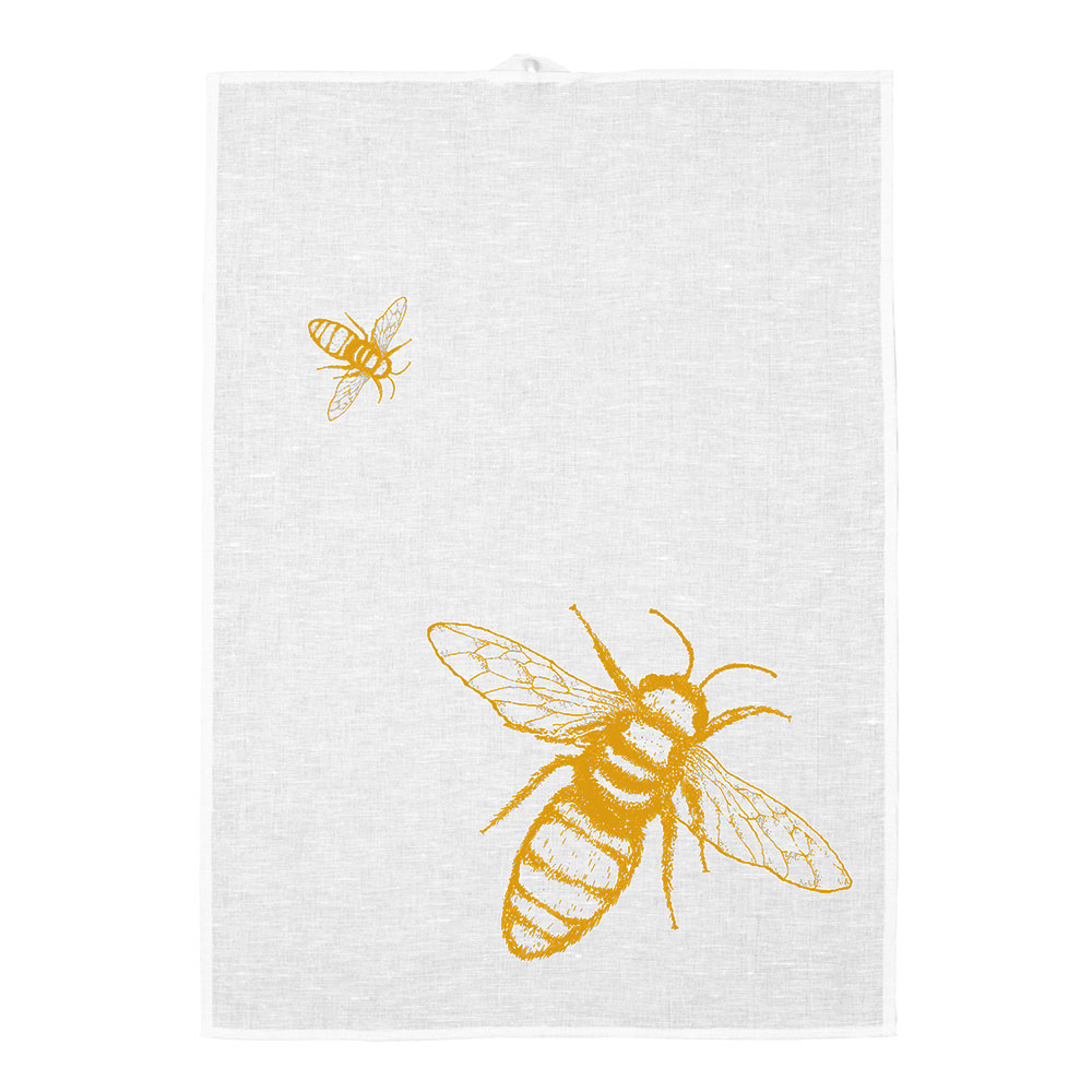 Unser Geschirrtuch Biene bieten wir in den Farben Messing und Safrangelb an!