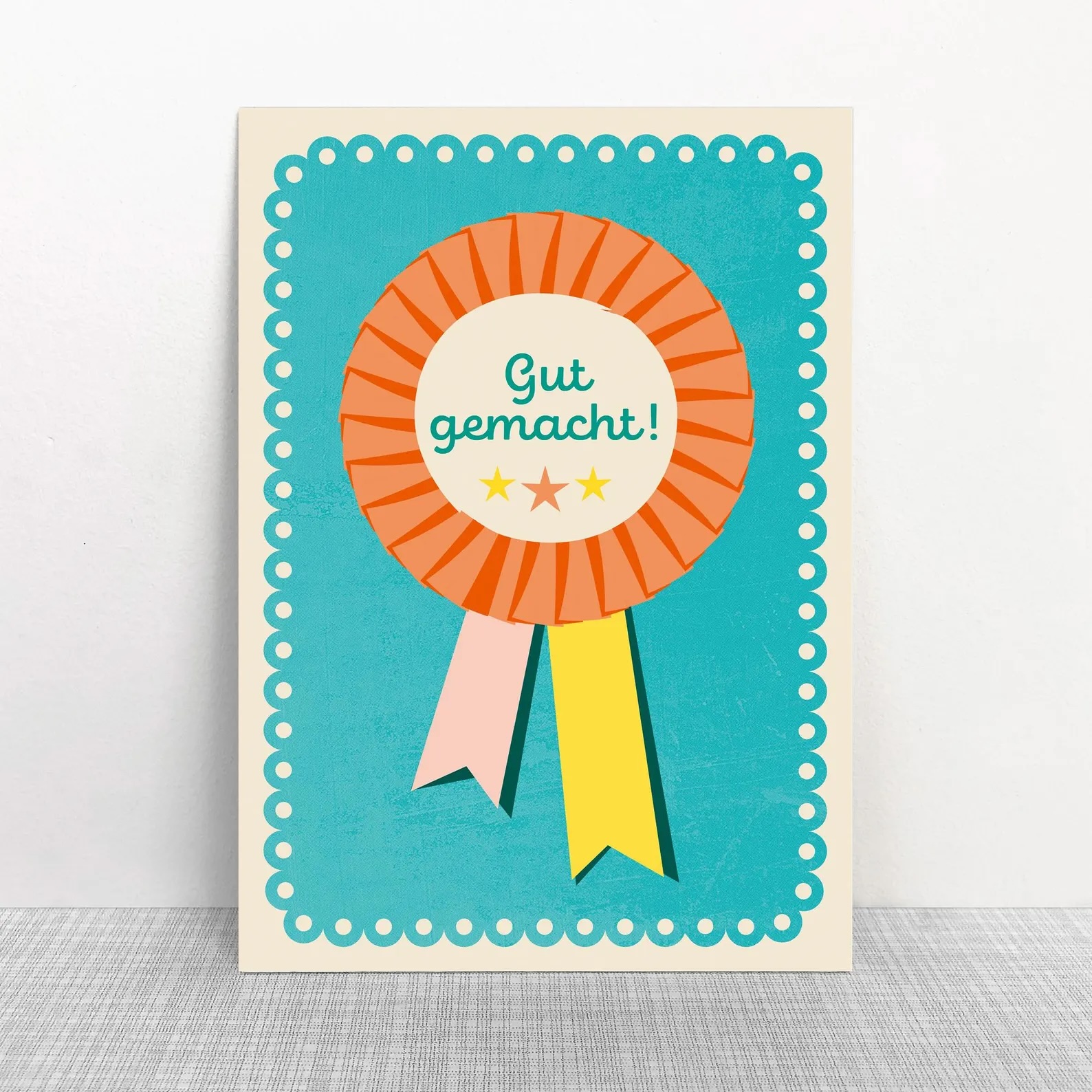 Gut gemacht – Postkarte mit hübschem Orden von MONIMARI für jedes Alter. Eine wundervolle Karte zum Mut machen, Loben und Belohnen. Schenke Freude und schreibe.