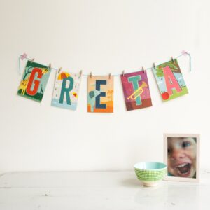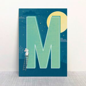 Wunderschöne Buchstaben-Postkarte von MONIMARI – für jedes Alter. Die Karten eignen sich als Türschild, Wanddeko, Geschenkanhänger, Namensgirlande, Geburtstagsgrüße, Babygeschenk oder zur Einschulung.