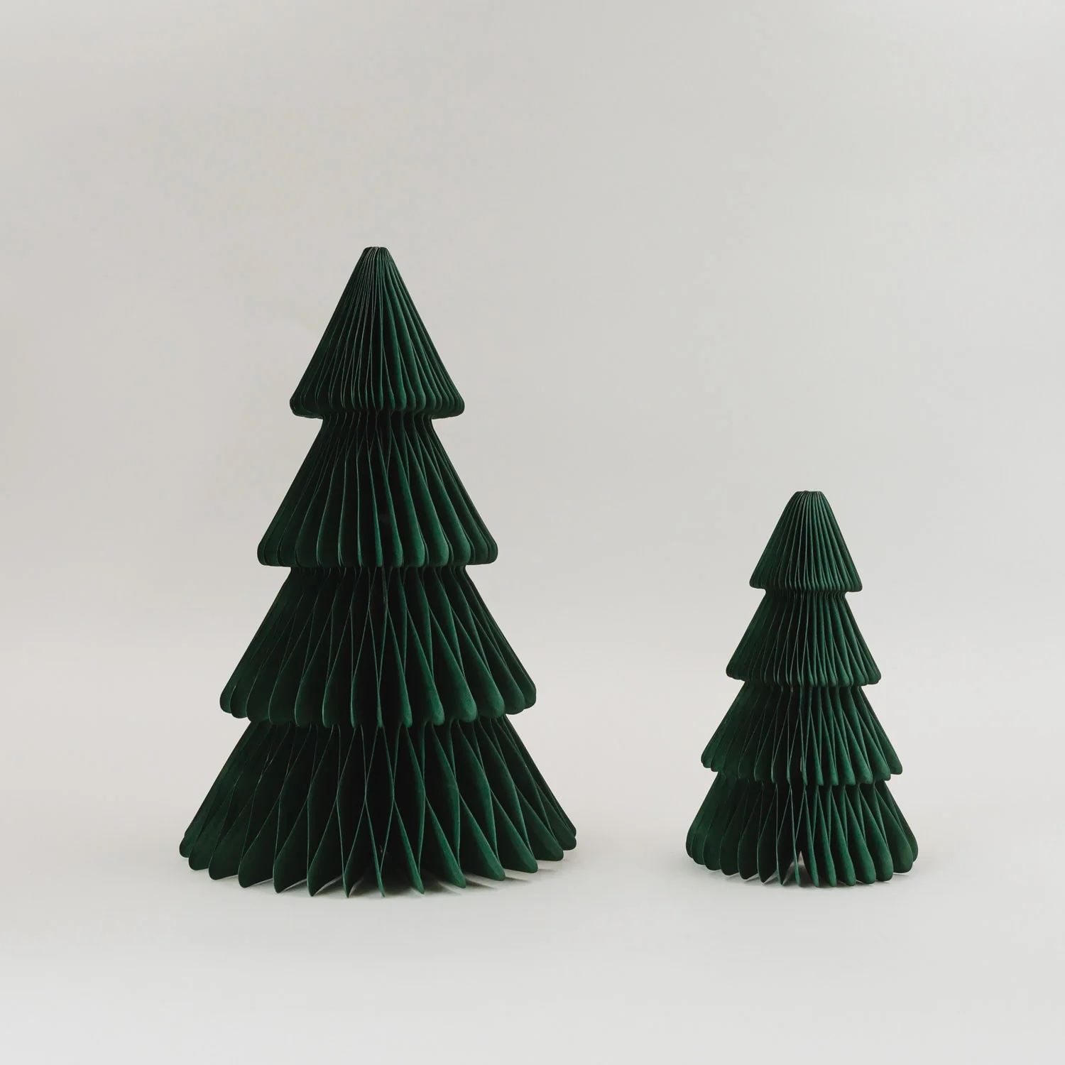 Bringe festliche Stimmung in dein Zuhause mit unserem stilvollen Papiertannen 2er Set in Dunkelgrün. Die eleganten Tannen aus hochwertigem Papier in feiner Wabenoptik sind ein echter Blickfang. Auch ein schönes Geschenk.