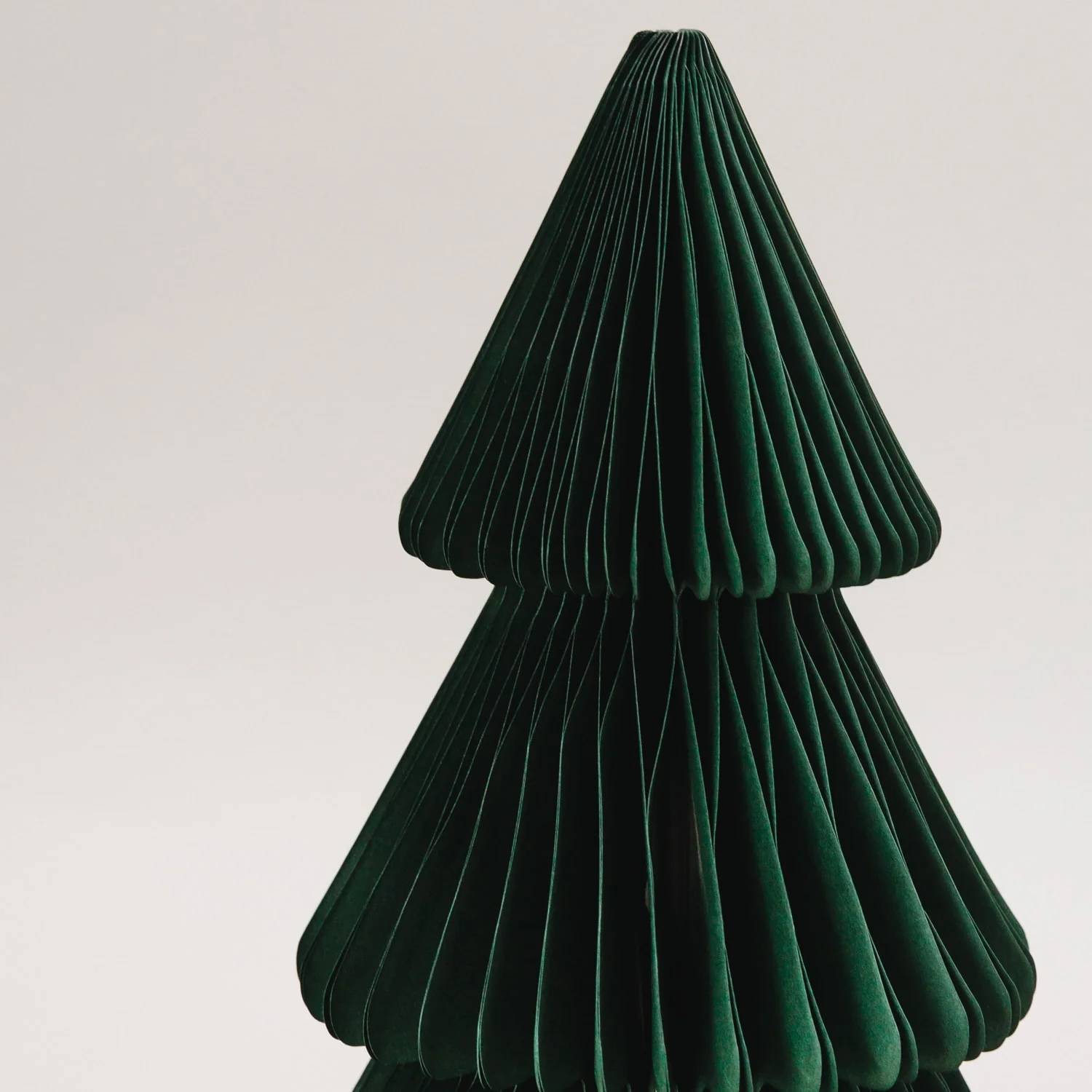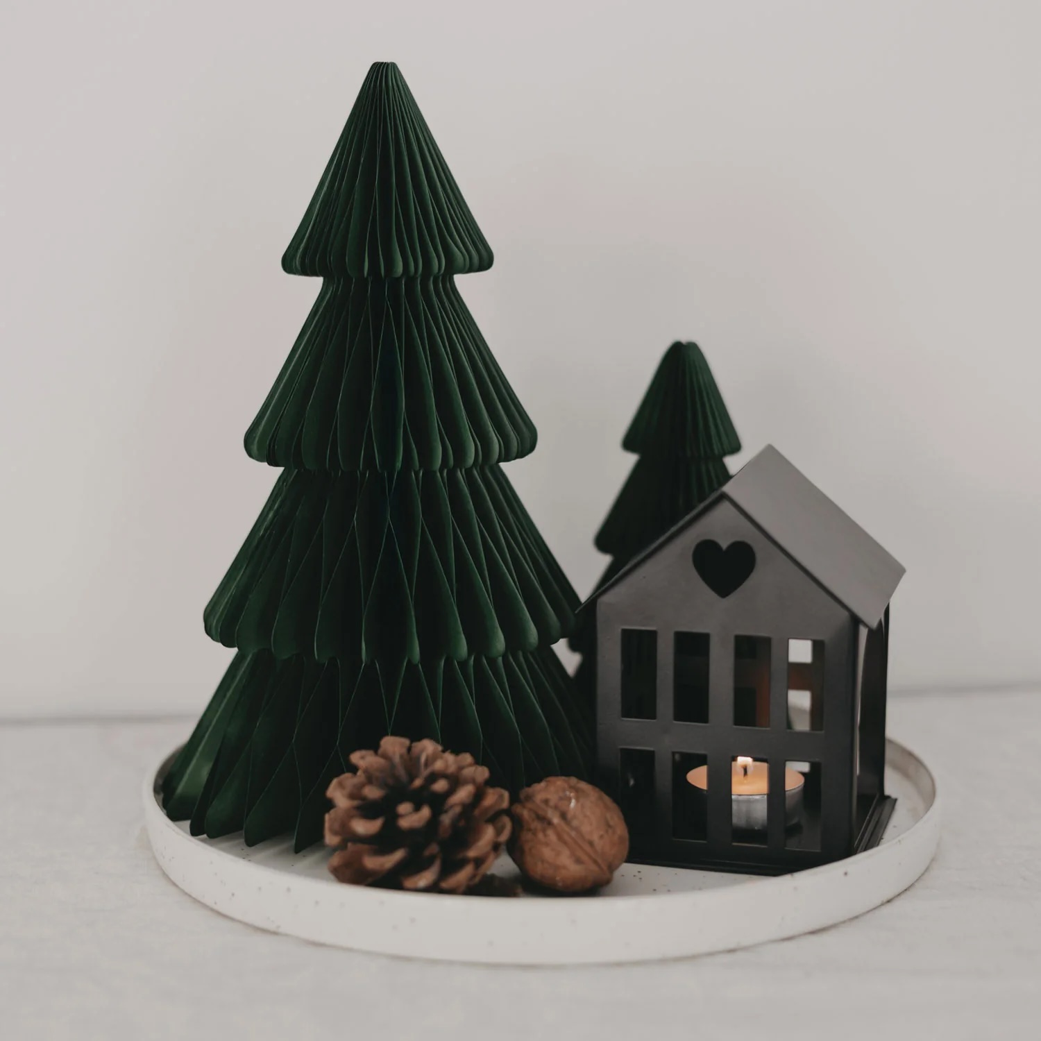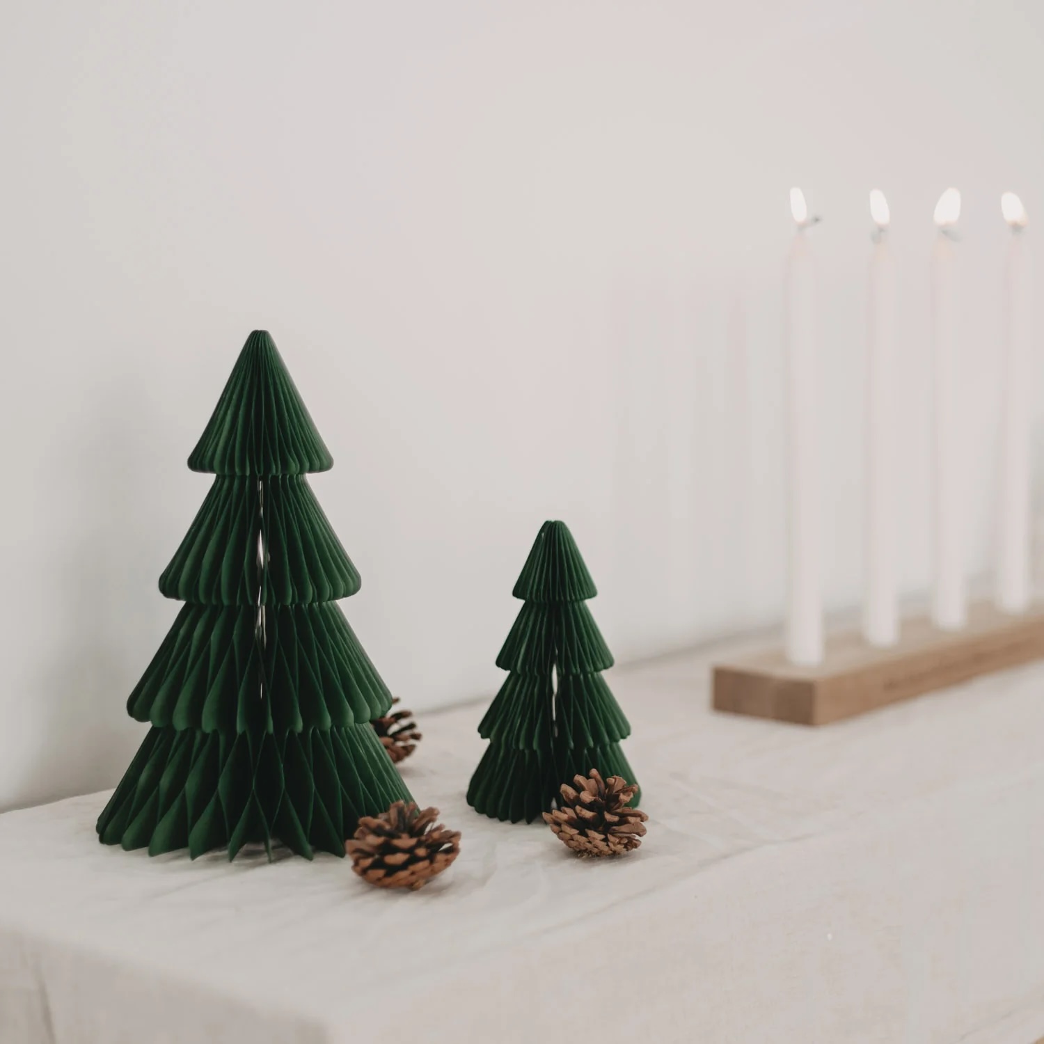 Bringe festliche Stimmung in dein Zuhause mit unserem stilvollen Papiertannen 2er Set in Dunkelgrün. Die eleganten Tannen aus hochwertigem Papier in feiner Wabenoptik sind ein echter Blickfang – ob auf dem Sideboard, als Adventsdeko oder als Highlight auf deiner festlich gedeckten Tafel.