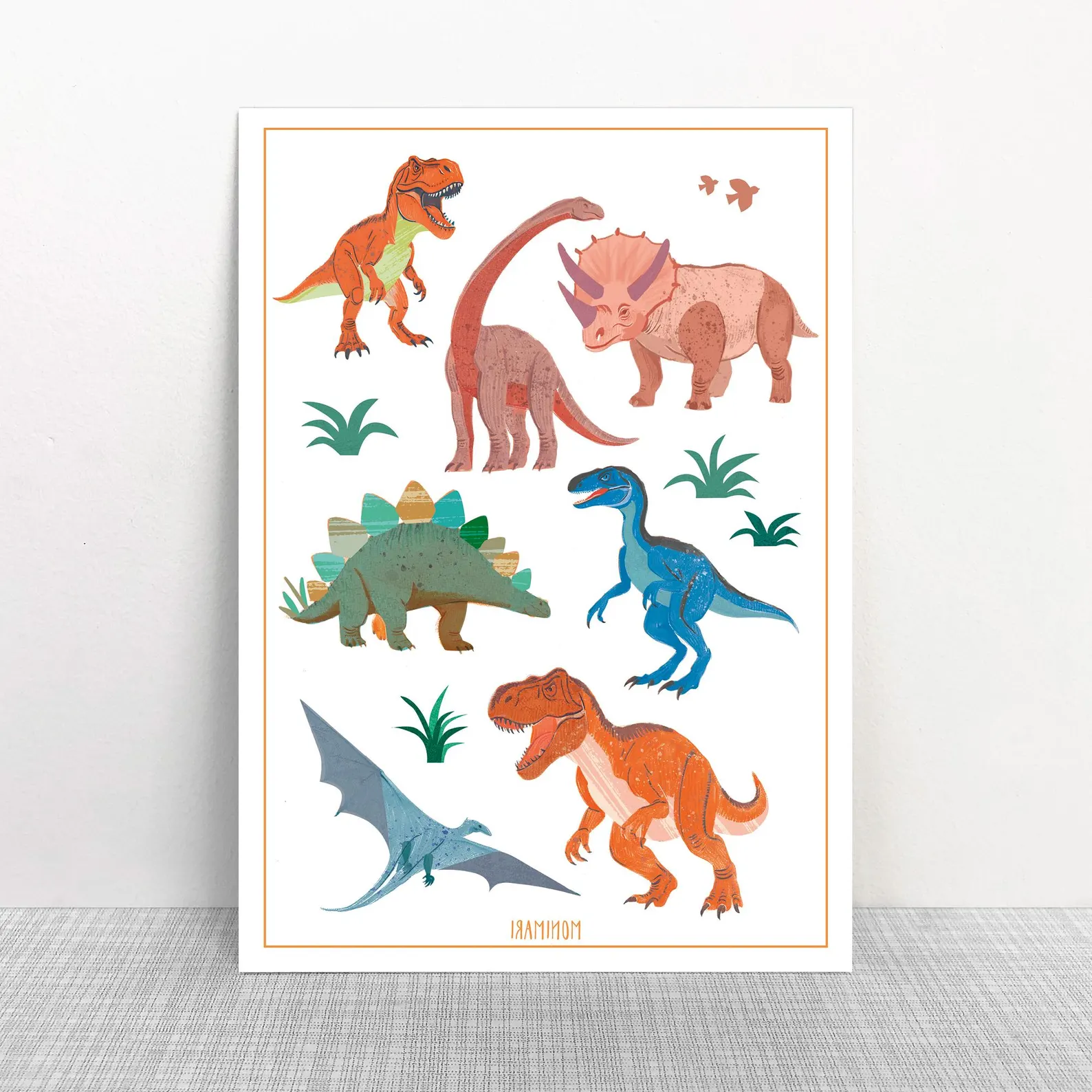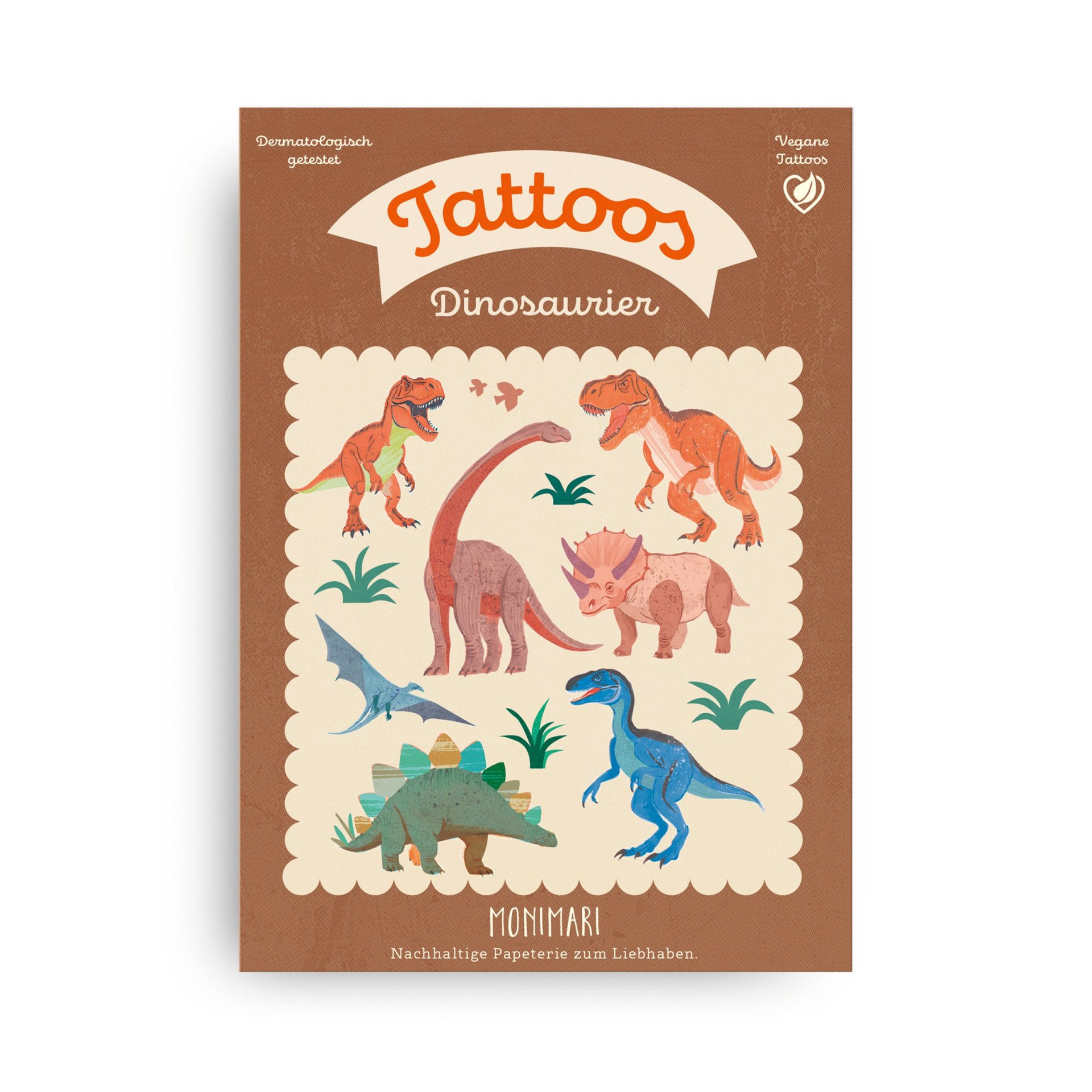 Endlich Schulkind! Da haben wir das perfekt Geschenk für die Schultüte. Tattoobogen für Kinder mit vielen schönen und coolen Dinosaurier Motiven. Diese temporären Tattoos von Monimari zeigen wunderschöne Illustrationen mit Dinosauriern.