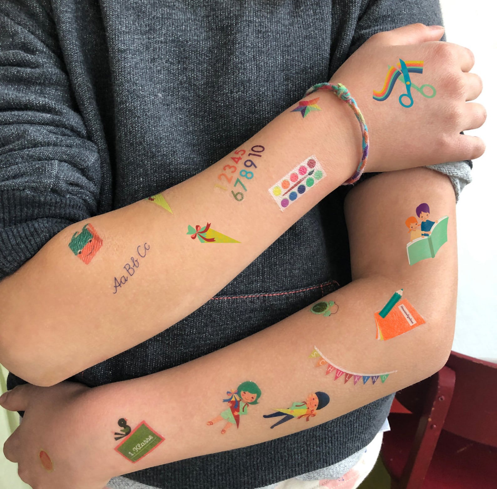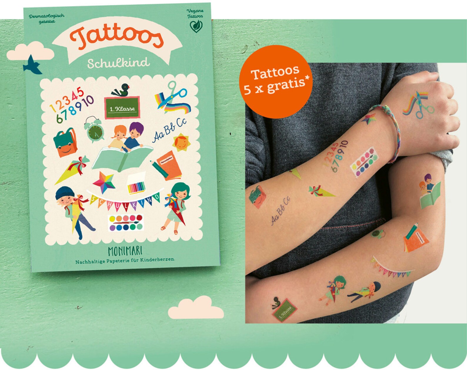 Endlich Schulkind! Da haben wir das perfekt Geschenk für die Schultüte. Tattoobogen für Kinder mit vielen schönen und niedlichen Schulkind Motiven. Diese temporären Tattoos von Monimari zeigen wunderschöne Illustrationen mit Schulkindmotiven.