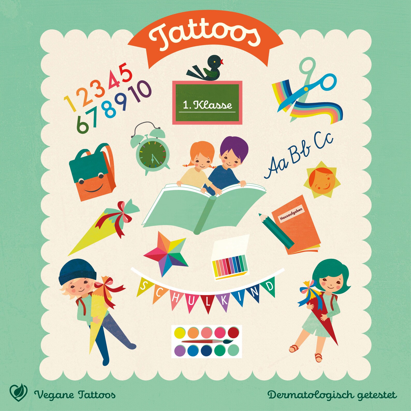 Endlich Schulkind! Da haben wir das perfekt Geschenk für die Schultüte. Tattoobogen für Kinder mit vielen schönen und niedlichen Schulkind Motiven.